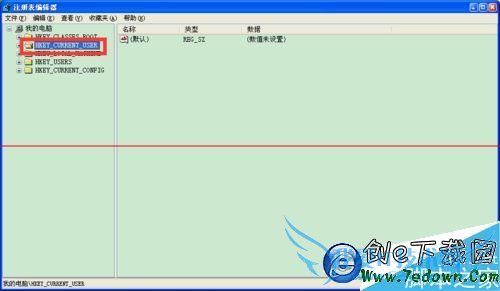3、【注册表编辑器】的窗口,在“我的电脑”找到“HKEY_CURRENT_USET”这一项。