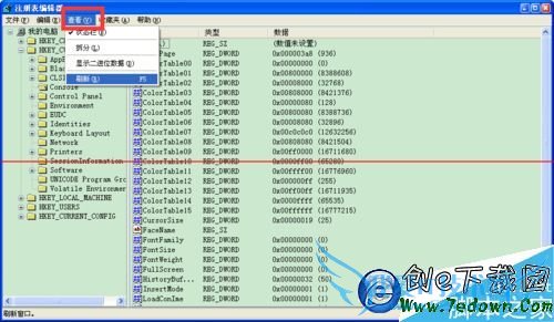 7、【注册表编辑器】的窗口,选择”查看“这一项,按F5刷新,看命令提示符是否显示中文。
