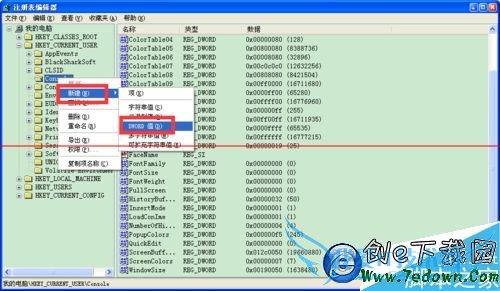 5、然后鼠标右键点击“Console“选择“新建”,点击“DWORD值。