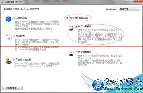2、双击mactype安装包,在第一次运行时需要对mactype进行设置更改,第一项是加载的方式,这里大家根据自己的喜好选择,我的更改方式如下图示
