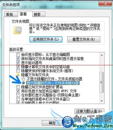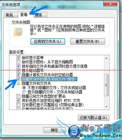 3、查看里面,把 系统保护隐藏文件 和 显示隐藏文件 都如图弄好了。