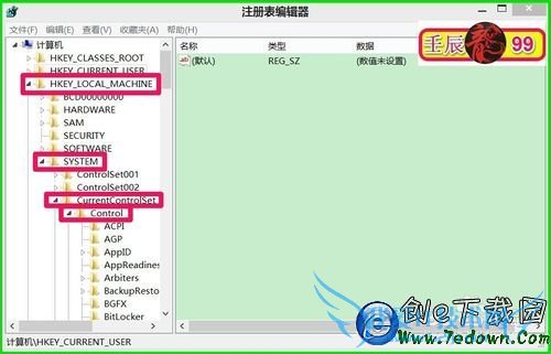 在打开的注册表编辑器窗口,展开:HKEY_LOCAL_MACHINE\SYSTEM\CurrentControlSet\Control