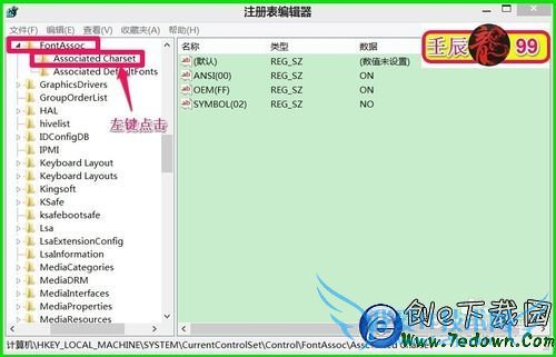 在Control的展开项中找到FontAssoc,并展开FontAssoc,在FontAssoc展开项中找到:Associated Charset并左键单击:Associated Charset;