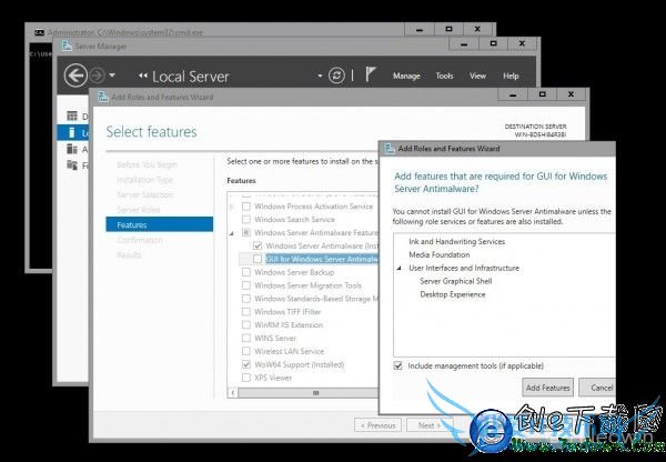 该版本的初始化安装并不包含桌面或者GUI工具,在安装过程一路顺畅,随后外媒在该版本上安装了GUI。在完成GUI的安装之后,能够轻松使用Add New Features功能,使整个服务器系统看上去像是Windows 10 Insider预览版,尽管在操作体验上有着很大的差别。