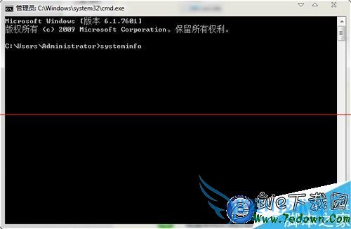 3、在弹出的命令提示符中,输入“systeminfo”并敲击“回车”。如图: