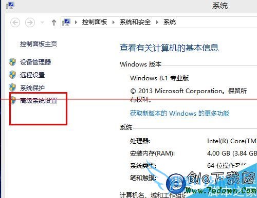 3、在“属性”对话框中,选择“高级系统设置”选项卡。