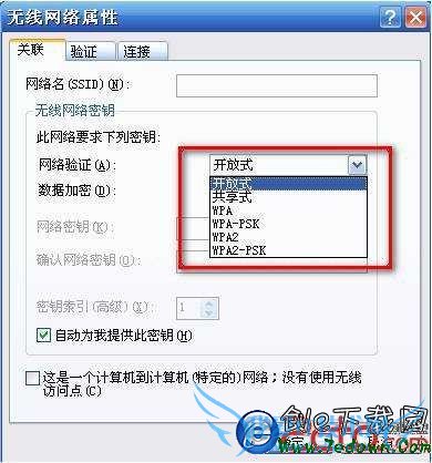 如果上面红框中没有无线路由器中设置的网络验证方法,请将无线路由器中的加密方法改为无线网卡支持的加密方式,或下载Windows操作系统补丁以支持前端无线路由器的加密方式。