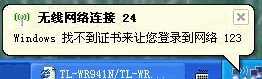 无线连接时,若无线网卡提示"windows找不到证书来让您登陆到网络"。如下图: