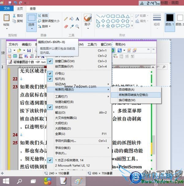 如果我们手头上正好没有带有自动菜单抓取功能的抓图软件,那也有办法。例如我们只有Windows 8.1的自动截图功能可用,别无他物,这时,可以先打开Windows画图工具,然后切换到要抓取的多级菜单界面,使用Win+PrintScreen系统组合键抓取热键将整个桌面抓到剪贴板中。之后回到画图编辑窗口,执行Ctrl+V粘贴操作,并用框选和裁剪按钮(或命令Ctrl+Shift+X),将所有与多级菜单无关的画面截掉(图4),同样也获得了我们需要的多级菜单截图。