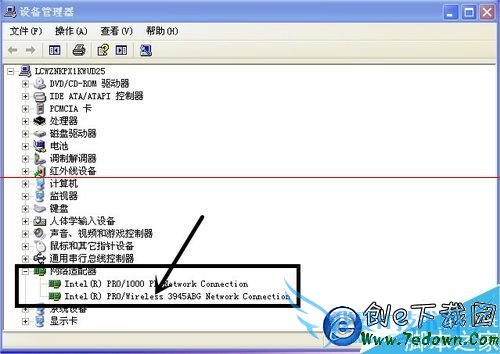 1、首先,要确保自己的电脑装了无线网卡,这个可以在设备管理里看到。右击【我的电脑】,查看【设备管理器】,如图展开【网络适配器】,箭头所指的带有wirless字样的就是无线网卡。