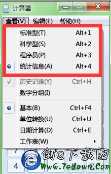 1、点击计算器左上角的查看菜单,下拉菜单选择工作类型。