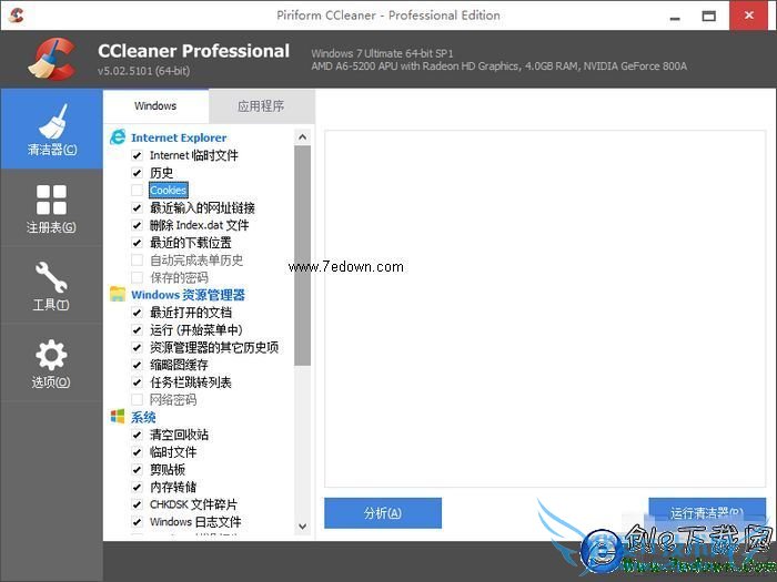小编建议大家使用专业的CCleaner(点击下载),比360、金山的垃圾清理工具效果更好。使用CCleaner清理“Windows”以及“应用程序”。