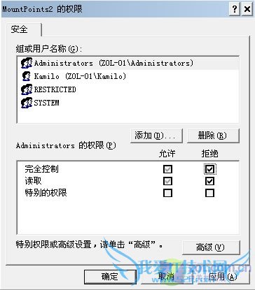 4.注册表中禁用所有用户的“自动播放”权限 “开始”→“运行”中输入“regedit”打开注册表编辑器,定位到:HKEY_CURRENT_USER/Software/Microsofthttp://windows.chinaitlab.com/CurrentVersion/Explorer/MountPoints2下,单击鼠标右键,选择“权限”项,将所有用户的权限设为“拒绝”。