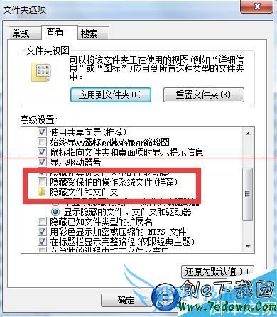 5、也可以更改Autoexec文件来防止电脑硬盘被格式化,首先将【隐藏系统保护文件勾去掉】,具体操作如下图