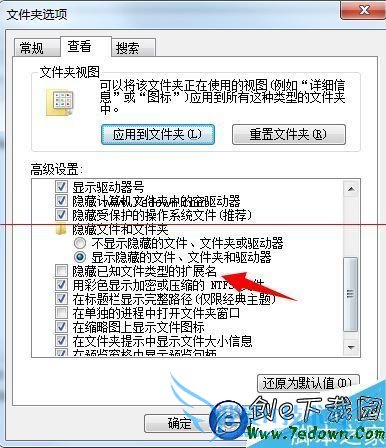 4、如果不显示文件后缀名,可以打开文件夹选项,将【隐藏已知文件类型扩展名】勾去掉