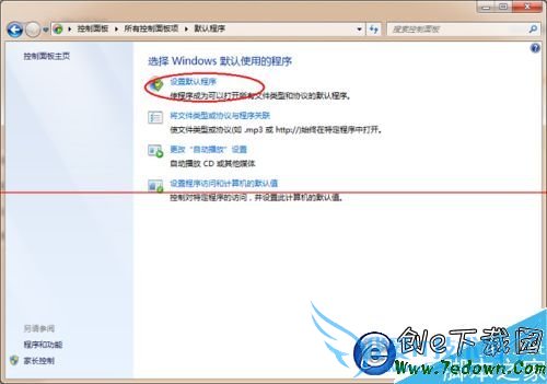 2、在新打开的窗口中,再次点击打开最上面的【设置默认程序】: