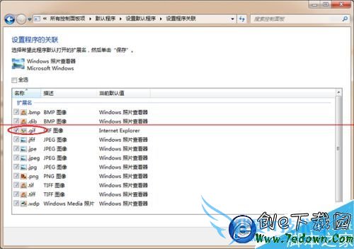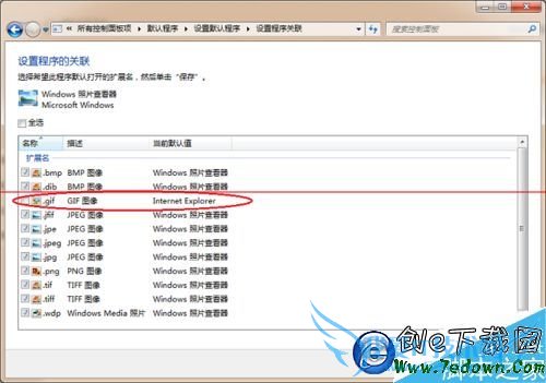6、下面我们把gif的默认打开程序设置为“windows照片查看器”,钩挑gif前面的复选框,点击确定进行设定。这样系统以后在双击打开gif文件就会使用默认的windows照片查看器了。