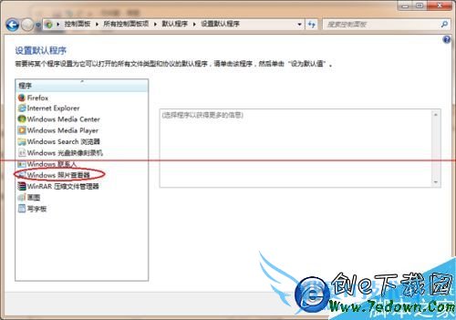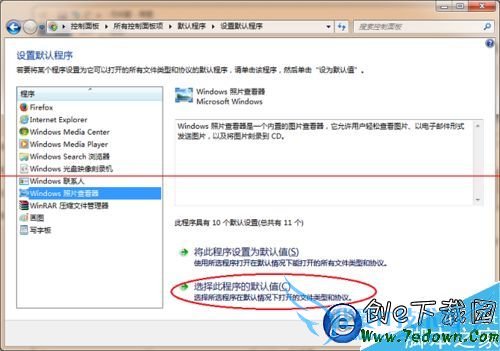 4、点击“windows照片查看器”界面如图所示,这时候我们再选择右下侧的“选择此程序的默认值”: