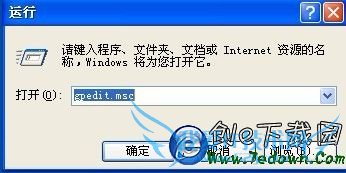 2、在运行对话框中键入“gpedit.msc”命令,单击“确定”启动组策略编辑器
