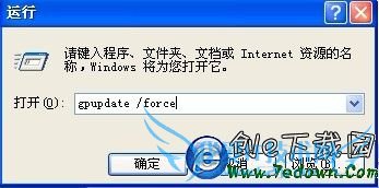 5、然后在运行框中输入“gpupdate /force”命令,单击“确定”来刷新策略