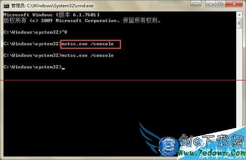 2、输入mstsc.exe /console,回车