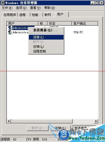 7、选择用户,右击断开的那个用户,选择连接