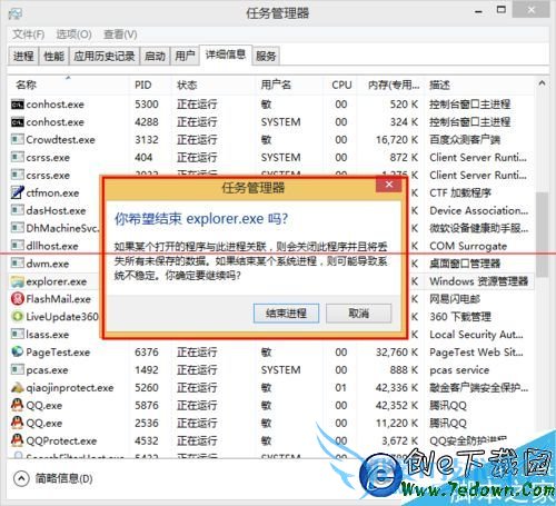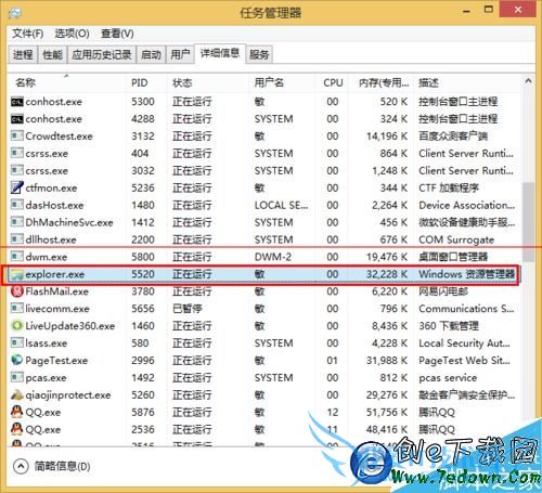 6、接下来只要重启“Windows资源管理器”即可,任务栏右键或【ctrl+alt+del】打开任务管理器,找到explorer进程并结束该进程。
