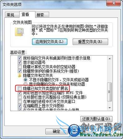 去掉“隐藏已知文件类型的扩展名”前的“√”