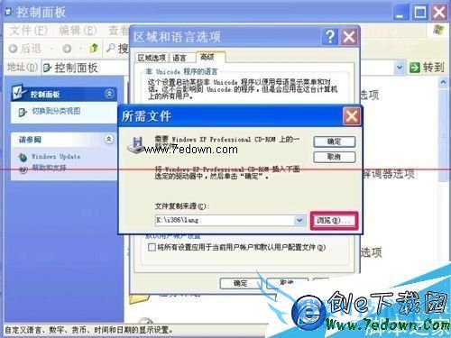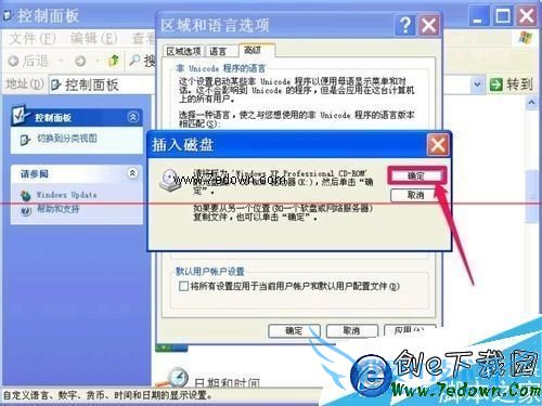 4,如果在设置“中文(中国)”区域语言时,弹出窗口,提示“插入磁盘”,这可能是“中文(中国)”语言字库损坏,必须修复安装。