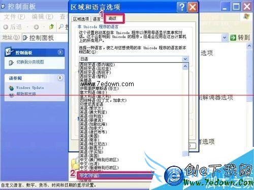 如果是XP系统,选择“高级”项,打开“非Unicode程序的语言”下的下拉框,选择“中文(中国)”这一项,设置就完成了。