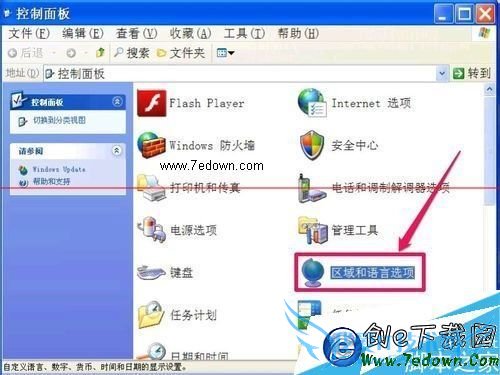 2,进入控制面板窗口后,找到“区域和语言选项”这一个图标,双击打开此项。