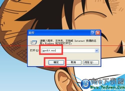 6、还有一种方法:【运行】的窗口,输入”gpedit.msc“的命令,然后点击”确定“。
