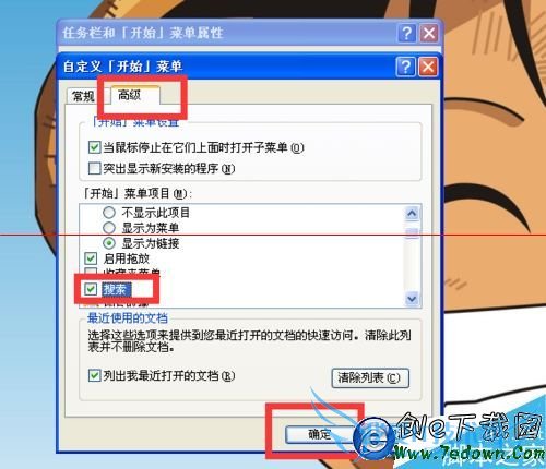 5、在”高级“里找到[开始]菜单项目,选择”搜索“在前面打上勾,然后点击”确定“即可。