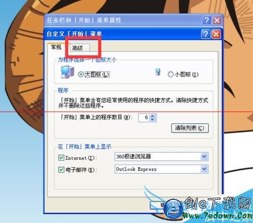 4、【自定义[开始]菜单】的窗口,选择”高级“这一项。