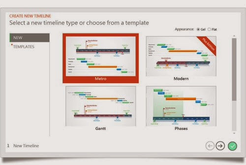 Office Timeline 基本款提供四种免费套版,其他 12 款属于 Plus Edition,得付费才能使用。商用版 49 美元,自用版 39 美元,要是公司预算通过,买个大家都能用的版本,一分摊每个人也花不了多少钱。
