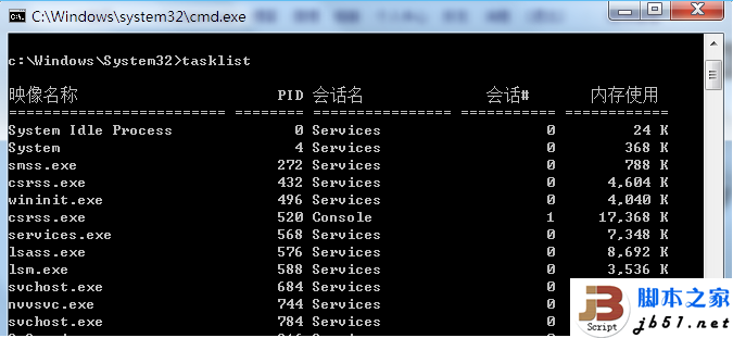 用法:同时按键windows+R ——cmd——cd c:/windows/system32——tasklist 此时将出现当前系统正在运行的任务