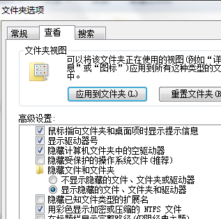 选择组织下的文件夹选项,将隐藏受保护的操作系统文件前面的"√"去掉,下面的隐藏文件选项选择显示隐藏文件
