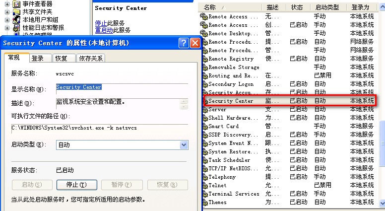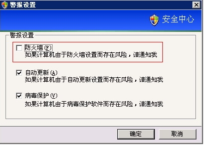WinXP从SP2后加入一个“安全中心”控制台,主要检测系统中病毒防护、防火墙、自动更新的状态。如果检测不到,就会在开机时自动弹出红色盾牌以示警告。