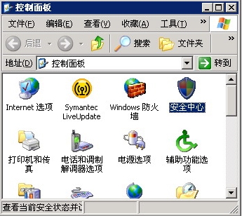 1. 进入“控制面板”,双击“安全中心”;