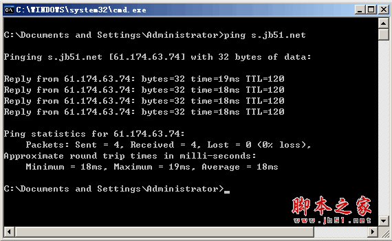 查看s.jb51.net网站的ip地址 ping s.jb51.net