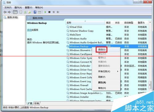 6、依次找到Windows Backup服务→启动。