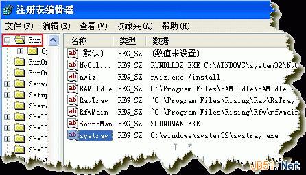 2、在注册表编辑器中找到HKEY_LOCAL_MACHINE\SOFTWARE\Microsoft\Windows \CurrentVersion\Run,在右边的窗口中新建一个字符串值,并重命名为systray,将它的值更改为C:\windows \system32\systray.exe,重启电脑后即可生效。相关截图如下所示: