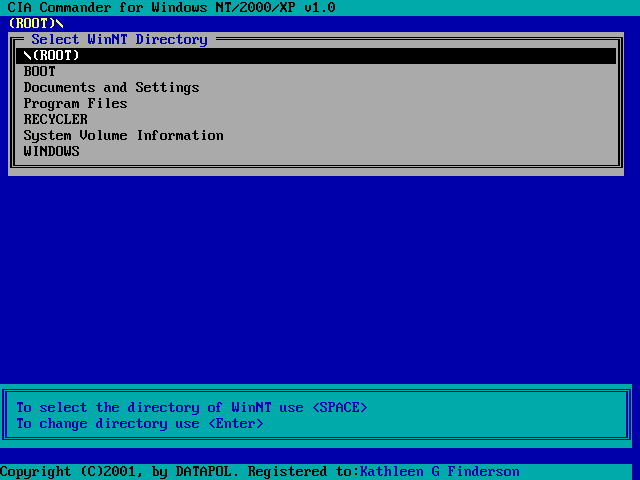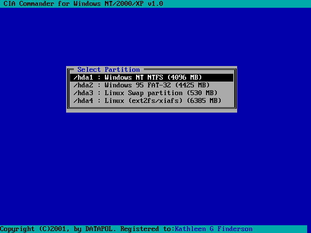 选择进入的分区。如果选非NTFS文件系统分区进入时会有出错提示。用方向键选择分区后按回车键,显示如下图11