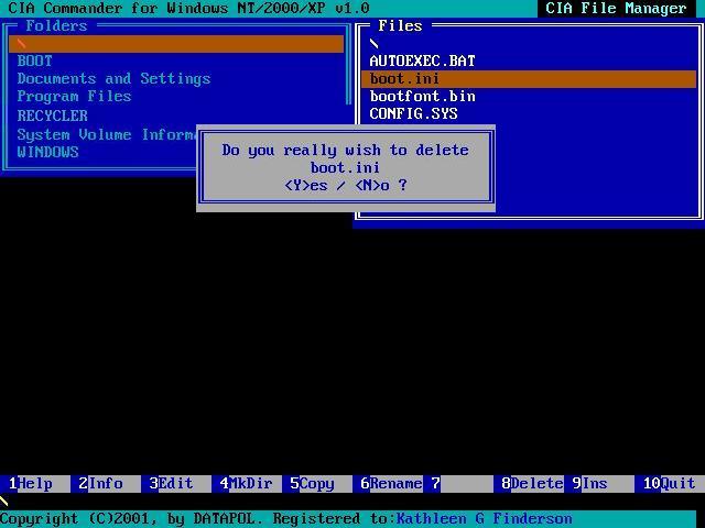然后按下F8键,准备删除boot.ini,出现提示,如下图14