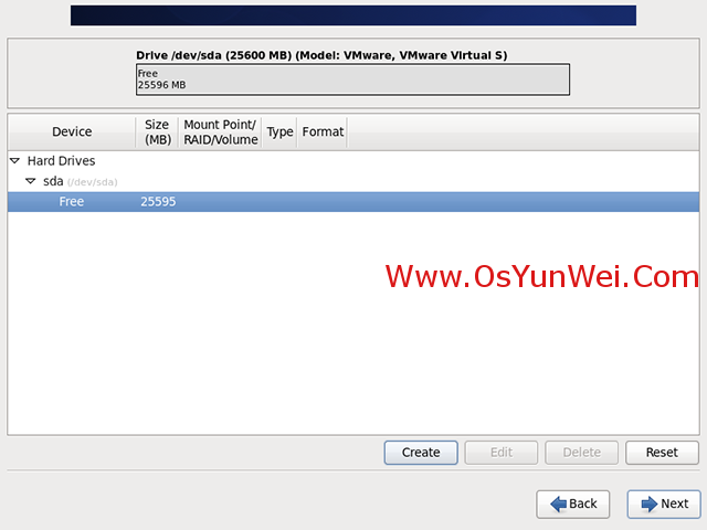 可以看到硬盘的容量,我这里显示的是25G,现在自定义分区。