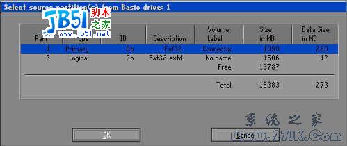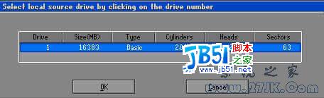 用上下光标键将蓝色光条定位到我们要制作镜像文件的分区上,按回车键确认我们要选择的源分区,再按一下Tab键将光标定位到OK键上(此时OK键变为白色),如图5,再按回车键。
