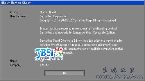 2、 运行ghost:至今为止,ghost只支持Dos的运行环境,这不能说不是一种遗憾:(。我们通常把ghost文件复制到启动软盘(U盘)里,也可将其刻录进启动光盘,用启动盘进入Dos环境后,在提示符下输入ghost,回车即可运行ghost,首先出现的是关于界面,如图1: