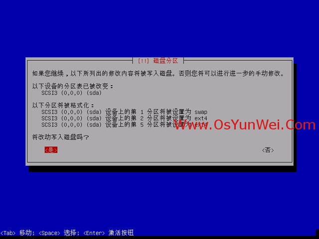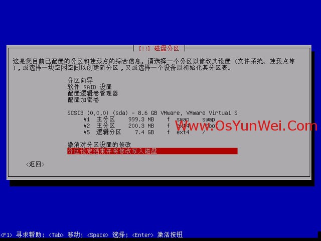 分区设定结束并将修改写入磁盘