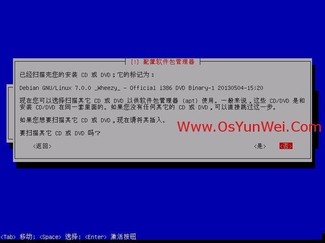 Debian7.0.0的安装镜像文件有3个DVD,安装基本系统只用到第一个镜像文件,即DVD1