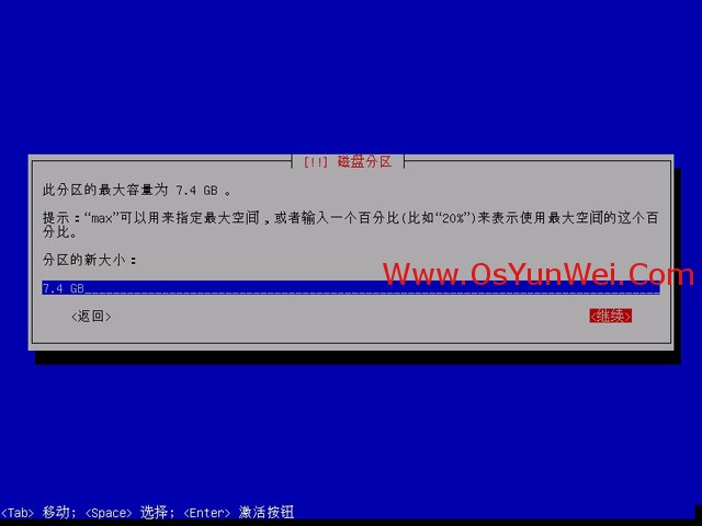 新分区大小:7.4GB